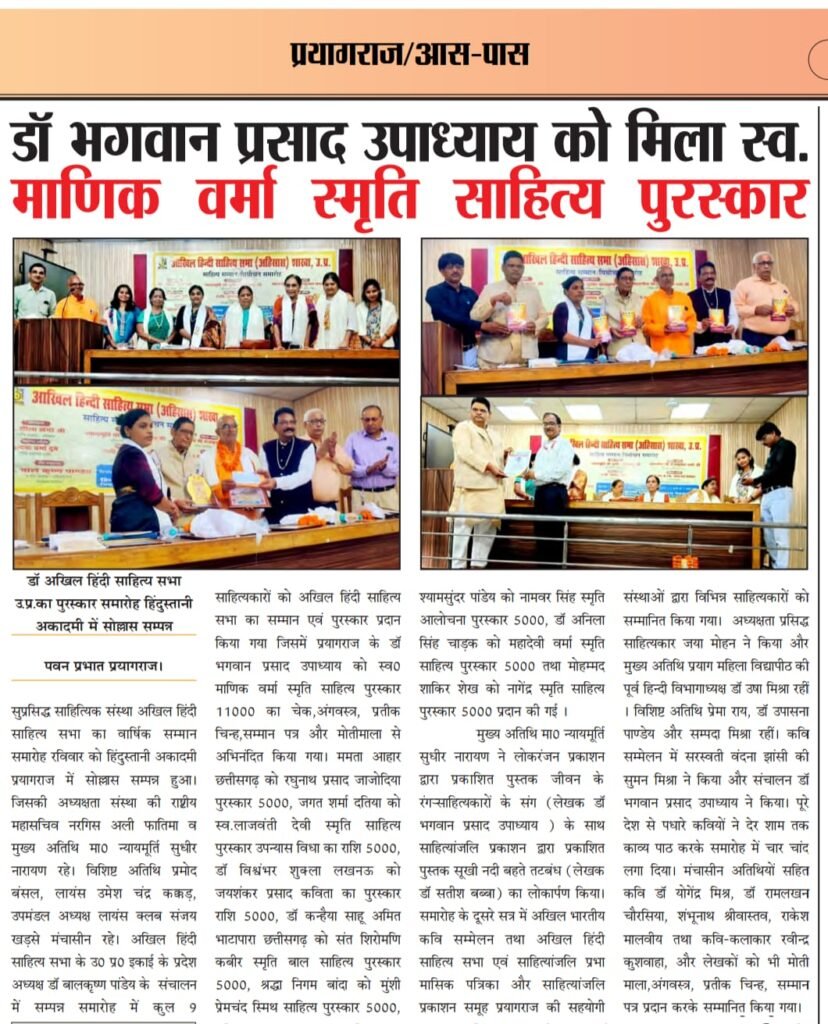 डॉ भगवान प्रसाद उपाध्याय हुए सम्मानित
